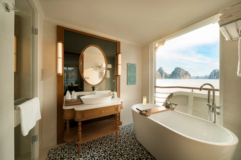 The grandeur of Ha Long’s mountains and the infinite horizon form a perfect balance, echoing nature’s rhythms and inviting you to rest in your own inner peace.