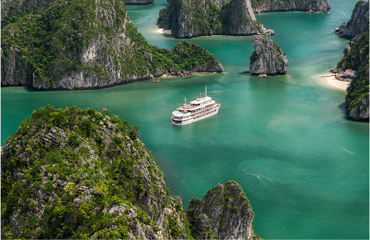 The grandeur of Ha Long’s mountains and the infinite horizon form a perfect balance, echoing nature’s rhythms and inviting you to rest in your own inner peace.